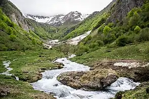 Le ruisseau d'Estours et le mont Valier en 2019.