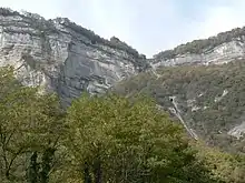 Vue de la cascade de l'Oule depuis Montfort. | |