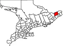 Localisation de la circonscription de Russell en Ontario en 1867.
