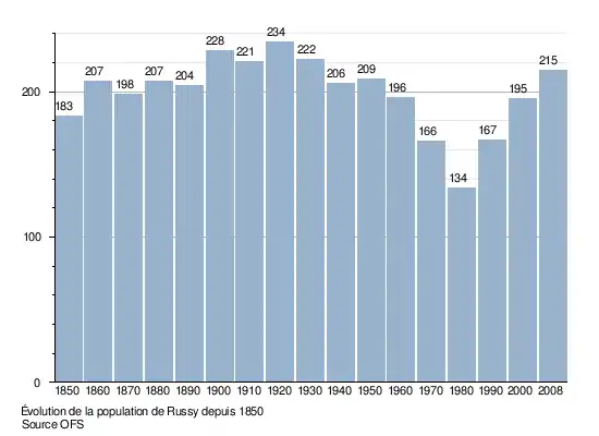 Selon l'Office fédéral de la statistique, Russy compte 216 habitants en 2022[2]. Sa densité de population atteint 58 hab./km2.