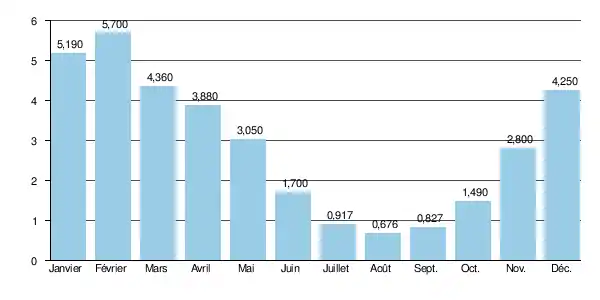 Le module de la rivière à Lafat est de 2,89 m3/s.