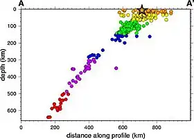 Le séisme profond le plus puissant répertorié dans les enregistrements sismiques a été le séisme de magnitude 8,3 en mer d'Okhotsk, survenu à une profondeur de 609 km en 2013[21]. Le séisme le plus profond jamais enregistré était un petit tremblement de terre de 4,2 sous Vanuatu à une profondeur de 735,8 km en 2004[22]. Toutefois, une réplique du tremblement de terre d'Ogasawara en 2015 pourrait s'être produite à une profondeur de 751 km[23].
