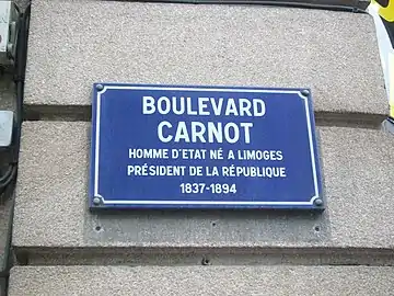 - « L'ingénieur ou le président ? Mais à qui donc le boulevard Carnot de Limoges est-il dédié ? », sur lepopulaire.fr, (consulté le ).