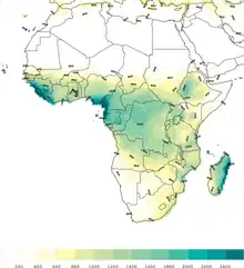 Selon des critères climatiques, la limite septentrionale du Sahara est l'isohyète des 100 mm (+ ou - 50 mm), correspondant à peu près à la limite d'implantation du palmier-dattier[7], l'une des espèces les plus caractéristiques de la zone de transition Méditerranée/Sahara. La limite sud est plus floue, elle peut être située sur l'isohyète des 150 mm, voire 250 mm[8].