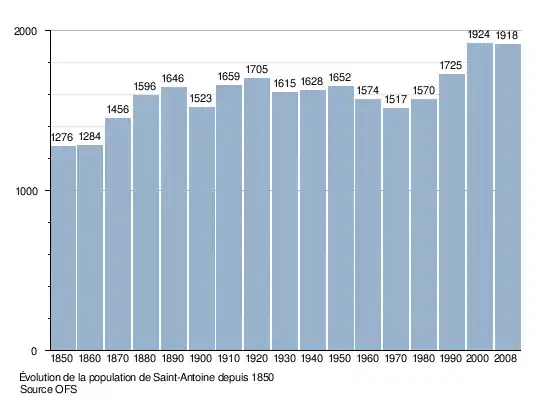 Selon l'Office fédéral de la statistique, Saint-Antoine compte 2 079 habitants en 2022[3]. Sa densité de population atteint 124 hab./km2.