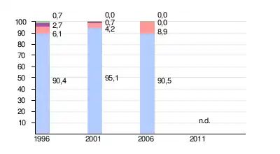 Évolution des langues maternelles (en %) Légende
