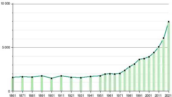 En 1990, 3 500 résidents sont recensés pour atteindre 4 002 en 2003 et 5 665 en 2014[8]. Selon le recensement du Canada de 2021, Saint-Apollinaire est la municipalité de plus de 5000 habitants qui a eu le plus grand pourcentage d'augmentation de sa population entre et avec un pourcentage de 30 %. Ceci fait que sa population atteint 7 968 personnes en .