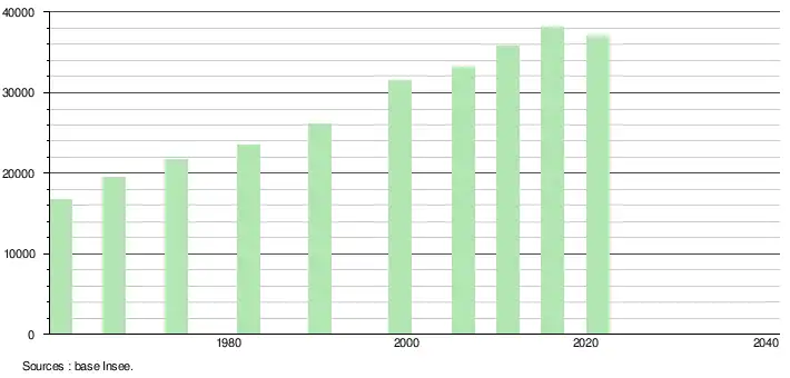 L'évolution du nombre d'habitants est connue à travers les recensements de la population effectués dans la commune depuis 1961, premier recensement postérieur à la départementalisation de 1946. À partir de 2006, les populations légales des communes sont publiées annuellement par l'Insee. Le recensement repose désormais sur une collecte d'information annuelle, concernant successivement tous les territoires communaux au cours d'une période de cinq ans. Pour les communes de plus de 10 000 habitants les recensements ont lieu chaque année à la suite d'une enquête par sondage auprès d'un échantillon d'adresses représentant 8 % de leurs logements, contrairement aux autres communes qui ont un recensement réel tous les cinq ans[18],[Note 4].