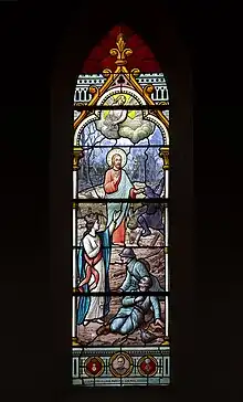 - Le vitrail de Guerre situé au milieu de la nef latérale à droite de l'église.