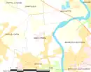 L'occupation des sols de la commune, telle qu'elle ressort de la base de données européenne d’occupation biophysique des sols Corine Land Cover (CLC), est marquée par l'importance des territoires agricoles (69,9 % en 2018), néanmoins en diminution par rapport à 1990 (78,7 %). La répartition détaillée en 2018 est la suivante : prairies (48,5 %), zones urbanisées (18,4 %), zones agricoles hétérogènes (11,2 %), terres arables (10,2 %), zones industrielles ou commerciales et réseaux de communication (5,1 %), eaux continentales[Note 3] (5,1 %), forêts (1,5 %)[18]. L'évolution de l’occupation des sols de la commune et de ses infrastructures peut être observée sur les différentes représentations cartographiques du territoire : la carte de Cassini (XVIIIe siècle), la carte d'état-major (1820-1866) et les cartes ou photos aériennes de l'IGN pour la période actuelle (1950 à aujourd'hui)[Carte 1].