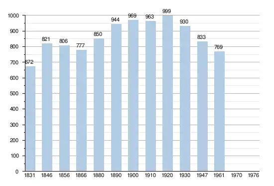 - Sources : INS, Rem. : 1831 jusqu'en 1970 = recensements, 1976 = nombre d'habitants au 31 décembre.