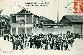 Le quartier, séparé du reste de la Plaine Saint-Denis par les installations ferroviaires (Lignes Paris-Lille, TGV Nord…) tient son nom de la fabrique des pianos Pleyel, fondée à cet emplacement par Ignace Joseph Pleyel (1757-1831) en 1807. La manufacture ferme dans les années 1960, avant de renaître près d'Alès (Gard).
