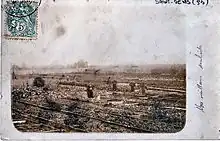 L'église Saint-Denys-de-l'Estrée, construite par Eugène Viollet-le-Duc et l'extrémité de la rue de la République.