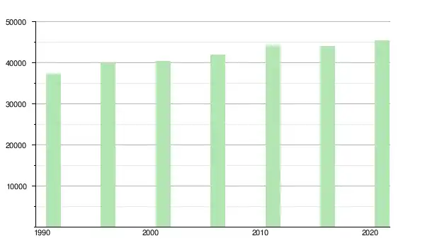 Cinq ans plus tard, soit en 2021, la population de Saint-Eustache s'élève à 45 467 habitants.[5]