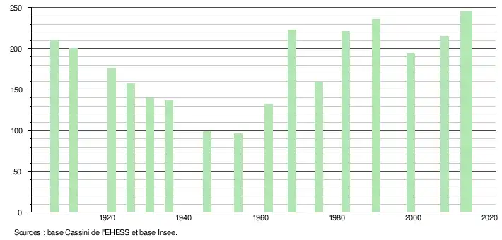 L'évolution du nombre d'habitants est connue à travers les recensements de la population effectués dans la commune depuis 1906. À partir du , les populations légales des communes sont publiées annuellement dans le cadre d'un recensement qui repose désormais sur une collecte d'information annuelle, concernant successivement tous les territoires communaux au cours d'une période de cinq ans.