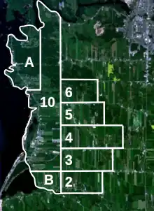 Le territoire actuel de la municipalité comprend la partie ouest des rangs 2, 3,4,5,6, le rang 10 au complet ainsi que les augmentations A et B.
