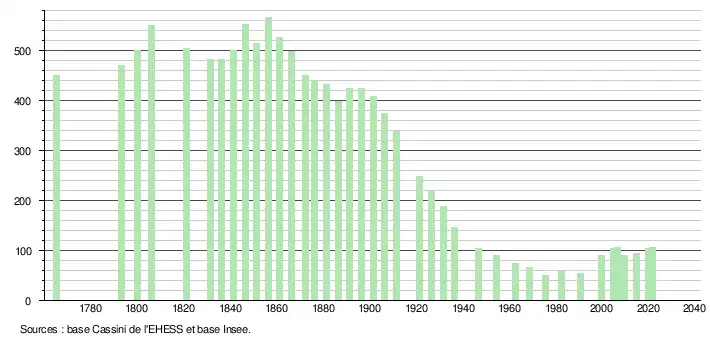 - Fiches Insee - Populations légales de la commune pour les années 2006, 2007, 2008, 2009, 2010, 2011, 2012, 2013, 2014, 2015, 2016, 2017, 2018, 2019, 2020 et 2021.