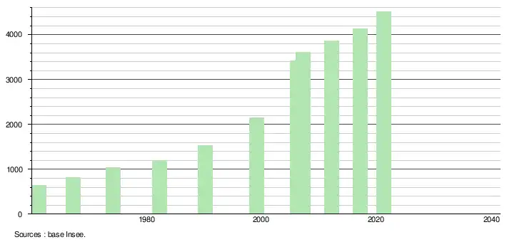 L'évolution du nombre d'habitants est connue à travers les recensements de la population effectués dans la commune depuis 1961, premier recensement postérieur à la départementalisation de 1946. À partir de 2006, les populations légales des communes sont publiées annuellement par l'Insee. Le recensement repose désormais sur une collecte d'information annuelle, concernant successivement tous les territoires communaux au cours d'une période de cinq ans. Pour les communes de moins de 10 000 habitants, une enquête de recensement portant sur toute la population est réalisée tous les cinq ans, les populations légales des années intermédiaires étant quant à elles estimées par interpolation ou extrapolation[21]. Pour la commune, le premier recensement exhaustif entrant dans le cadre du nouveau dispositif a été réalisé en 2007[22].