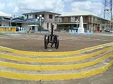 La commune brésilienne d'Oiapoque lui fait face, sur la rive opposée.