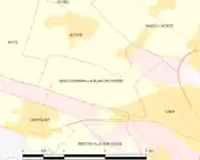 L'occupation des sols de la commune, telle qu'elle ressort de la base de données européenne d’occupation biophysique des sols Corine Land Cover (CLC), est marquée par l'importance des territoires agricoles (79,3 % en 2018), néanmoins en diminution par rapport à 1990 (84,4 %). La répartition détaillée en 2018 est la suivante : terres arables (79,3 %), zones urbanisées (20,6 %), zones industrielles ou commerciales et réseaux de communication (0,1 %)[17]. L'évolution de l’occupation des sols de la commune et de ses infrastructures peut être observée sur les différentes représentations cartographiques du territoire : la carte de Cassini (XVIIIe siècle), la carte d'état-major (1820-1866) et les cartes ou photos aériennes de l'IGN pour la période actuelle (1950 à aujourd'hui)[Carte 1].