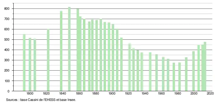 L'évolution du nombre d'habitants est connue à travers les recensements de la population effectués dans la commune depuis 1793. À partir du , les populations légales des communes sont publiées annuellement dans le cadre d'un recensement qui repose désormais sur une collecte d'information annuelle, concernant successivement tous les territoires communaux au cours d'une période de cinq ans.