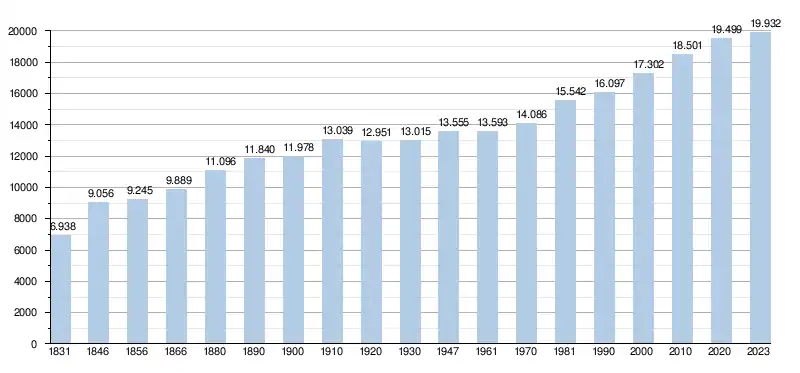 - Source : DGS - Remarque: 1831 jusqu'à 1981=recensement; depuis 1990=nombre d'habitants chaque 1er janvier[6]