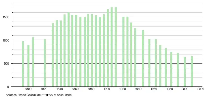 L'évolution du nombre d'habitants est connue à travers les recensements de la population effectués dans la commune depuis 1793. À partir du , les populations légales des communes sont publiées annuellement dans le cadre d'un recensement qui repose désormais sur une collecte d'information annuelle, concernant successivement tous les territoires communaux au cours d'une période de cinq ans.