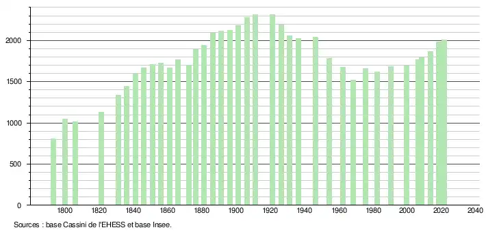 2 006 hab. (2021 en augmentation de 5,47 % par rapport à 2015)