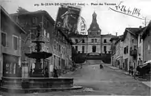 Fontaine de la place des Terreaux et Hôtel de ville de Saint-Jean-de-Bournay en avril 2019 | |||||