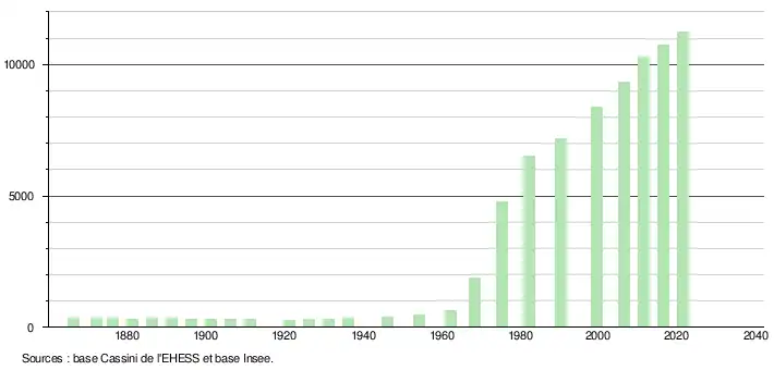 L'évolution du nombre d'habitants est connue à travers les recensements de la population effectués dans la commune depuis 1866. Pour les communes de plus de 10 000 habitants les recensements ont lieu chaque année à la suite d'une enquête par sondage auprès d'un échantillon d'adresses représentant 8 % de leurs logements, contrairement aux autres communes qui ont un recensement réel tous les cinq ans[33],[Note 7].