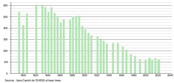 - Population municipale légale en vigueur au 1er janvier 2024, millésimée 2021, définie dans les limites territoriales en vigueur au 1er janvier 2023, date de référence statistique : 1er janvier 2021.