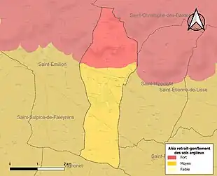 Le retrait-gonflement des sols argileux est susceptible d'engendrer des dommages importants aux bâtiments en cas d’alternance de périodes de sécheresse et de pluie. La totalité de la commune est en aléa moyen ou fort (67,4 % au niveau départemental et 48,5 % au niveau national). Sur les 175 bâtiments dénombrés sur la commune en 2019, 175 sont en aléa moyen ou fort, soit 100 %, à comparer aux 84 % au niveau départemental et 54 % au niveau national. Une cartographie de l'exposition du territoire national au retrait gonflement des sols argileux est disponible sur le site du BRGM[22],[Carte 2].