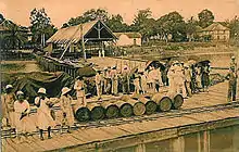 Le gouvernement français fit venir des ressortissants portugais, africains, indiens et chinois. Ces derniers constituèrent le groupe le plus important. Venus de Shanghai et de Canton, ils ouvrirent des alimentations et des bazars, commerces où ils sont toujours majoritaires. Dans le même temps furent déportées des femmes dans la perspective, leurs peines finies, de s'installer pour fonder un foyer. Ce fut un échec et cette tentative fut arrêtée en 1905[23].