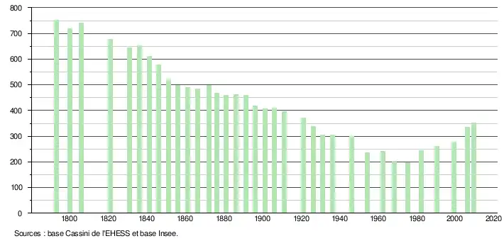(Sources : Ldh/EHESS/Cassini jusqu'en 1999[4] puis Insee à partir de 2006[8].)
