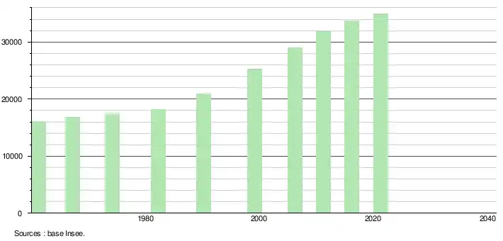 L'évolution du nombre d'habitants est connue à travers les recensements de la population effectués dans la commune depuis 1961, premier recensement postérieur à la départementalisation de 1946. À partir de 2006, les populations légales des communes sont publiées annuellement par l'Insee. Le recensement repose désormais sur une collecte d'information annuelle, concernant successivement tous les territoires communaux au cours d'une période de cinq ans. Pour les communes de plus de 10 000 habitants les recensements ont lieu chaque année à la suite d'une enquête par sondage auprès d'un échantillon d'adresses représentant 8 % de leurs logements, contrairement aux autres communes qui ont un recensement réel tous les cinq ans[19],[Note 3].