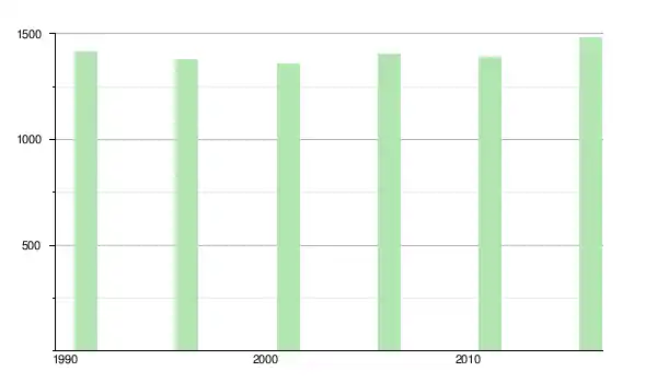 6,6 %) entre 2011 et 2016. La densité brute de la population est de 18,6 habitants/km2 pour l'ensemble de la municipalité. Le parc résidentiel s'élève à 602 logements privés, dont 580 sont occupés par des résidents habituels[8]. La population locale semble fluctuante à long terme, depuis 1991.