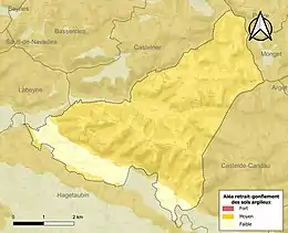 Le retrait-gonflement des sols argileux est susceptible d'engendrer des dommages importants aux bâtiments en cas d’alternance de périodes de sécheresse et de pluie[30]. 86,7 % de la superficie communale est en aléa moyen ou fort (59 % au niveau départemental et 48,5 % au niveau national)[Carte 3]. Depuis le , en application de la loi ELAN, différentes contraintes s'imposent aux vendeurs, maîtres d'ouvrages ou constructeurs de biens situés dans une zone classée en aléa moyen ou fort[Note 5],[31].