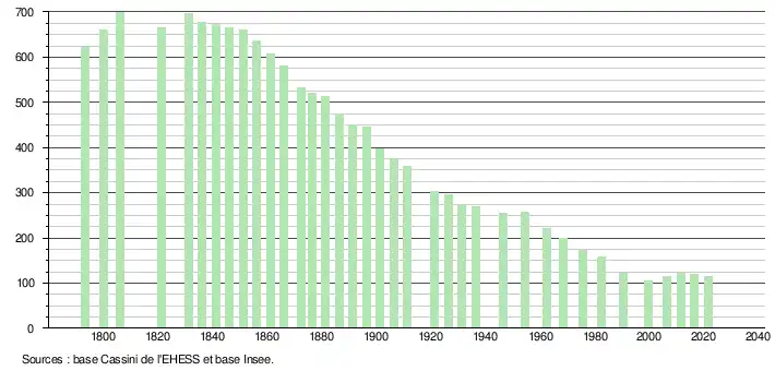 (Sources : Ldh/EHESS/Cassini jusqu'en 1999[14] puis Insee à partir de 2006[23].)