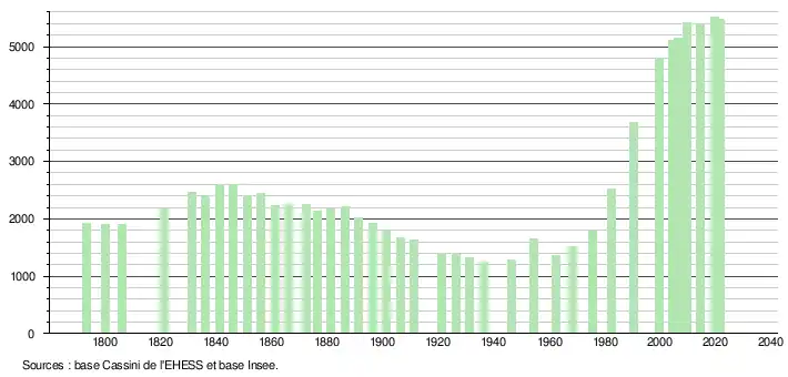 5 483 hab. (2021 en augmentation de 1,39 % par rapport à 2015)