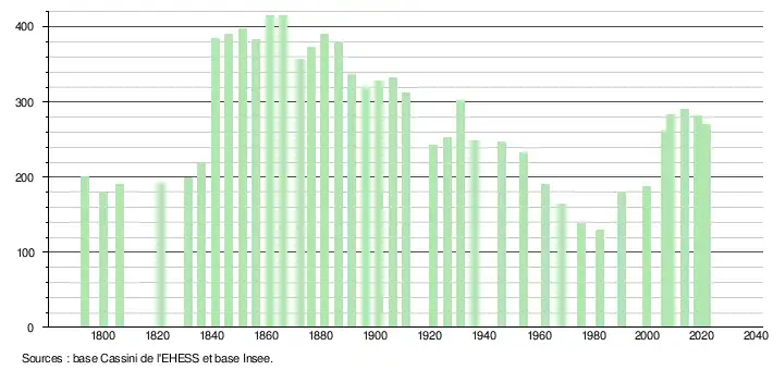 270 hab. (2021 en diminution de 8,78 % par rapport à 2015)