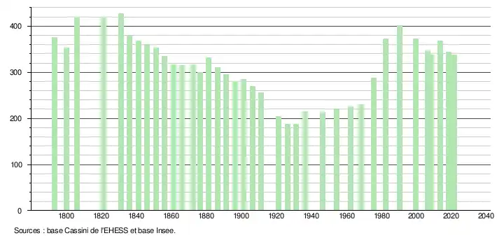 - Fiches Insee - Populations légales de la commune pour les années 2006, 2007, 2008, 2009, 2010, 2011, 2012, 2013, 2014, 2015, 2016, 2017, 2018, 2019, 2020 et 2021.