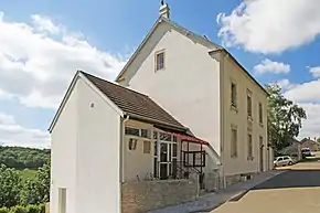 - Chapelle de Fontette dont il manque le sommet du clocher-mur, remplacé par une flèche à six côtés en zinc sur charpente en bois qui semble en équilibre précaire... L'entrée est abritée par un élégant porche en bois.