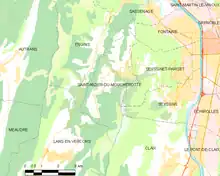Situé au nord-est du « Pays des Quatre-Montagnes », également dénommé « Val de Lans »[1], le territoire communal se limite[4] :