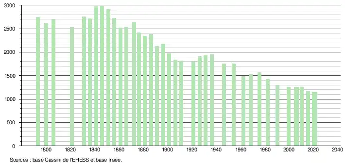 - Population municipale légale en vigueur au 1er janvier 2024, millésimée 2021, définie dans les limites territoriales en vigueur au 1er janvier 2023, date de référence statistique : 1er janvier 2021.