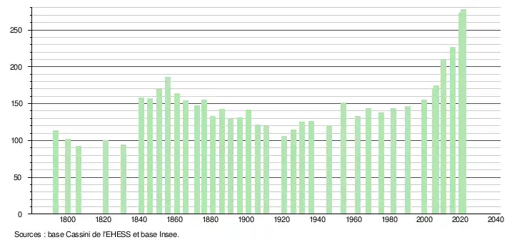 (Sources : Ldh/EHESS/Cassini jusqu'en 1999[20] puis Insee à partir de 2006[22].)