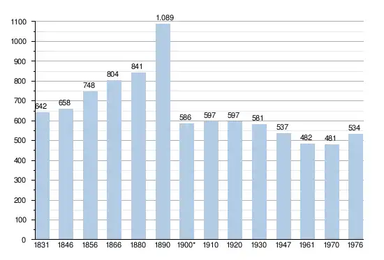 • Source: DGS, 1831 à 1970=recensements population, 1976= habitants au 31 décembre