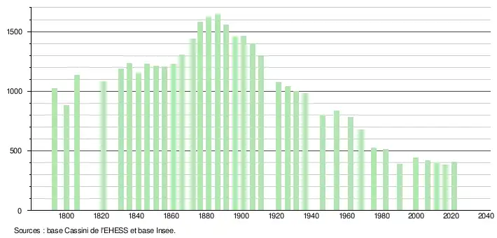 - Fiches Insee - Populations légales de la commune pour les années 2006, 2007, 2008, 2009, 2010, 2011, 2012, 2013, 2014, 2015, 2016, 2017, 2018, 2019, 2020 et 2021.