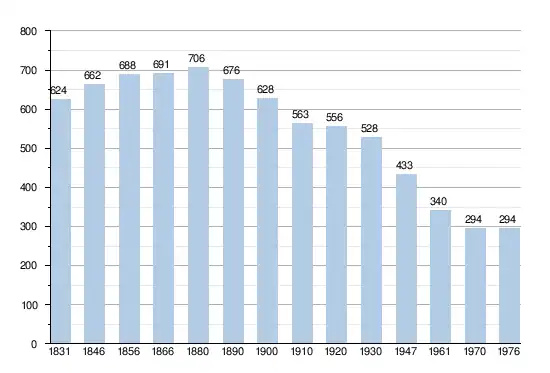 - Sources:INS, Rem:1831 jusqu'en 1970=recensements, 1976= nombre d'habitants au 31 décembre