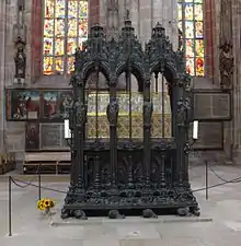 L'œuvre la plus imposante de l'époque précédant la réforme est sans doute le monument funéraire de saint Sébald, le patron de la ville. Jusqu'au XIVe siècle, les reliques de saint Sébald était conservées dans une châsse en argent. Vers la fin du XIVe siècle, la décision est prise de faire construire un habitacle qui abriterait la châsse. La structure externe du tombeau est fondue en bronze par Peter Vischer l'Ancien en 1508–1519 en collaboration avec ses fils Pierre le Jeune et Hermann. De nombreuses figures décorent le monument, notamment des scènes de la vita de saint Sébald, des tritons et satyres, une représentation de Pégase, et une femme se regardant dans une glace, symbole de la vanité. Ces figures s'inspirent de dessins de Jacopo de' Barbari qui était pendant trois ans peintre de cour à Nuremberg de l'empereur Maximilien Ier. Le symbole de la vanité fait là son entrée das l'iconographie allemande. Le tombeau de saint Sébald est considéré comme un des premiers exemples de l'acceptation des formes de la Renaissance italienne au nord des Alpes[2].
