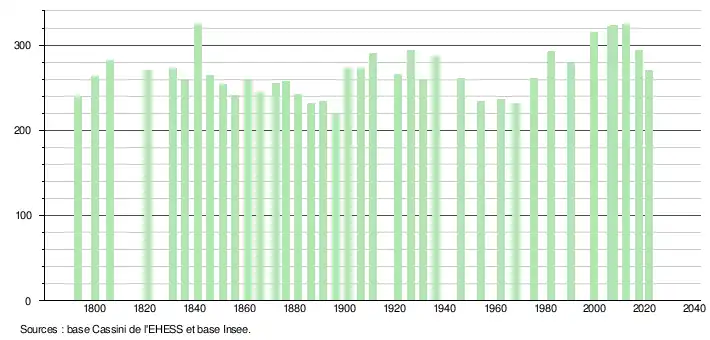 - Fiches Insee - Populations légales de la commune pour les années 2006, 2007, 2008, 2009, 2010, 2011, 2012, 2013, 2014, 2015, 2016, 2017, 2018, 2019, 2020 et 2021.